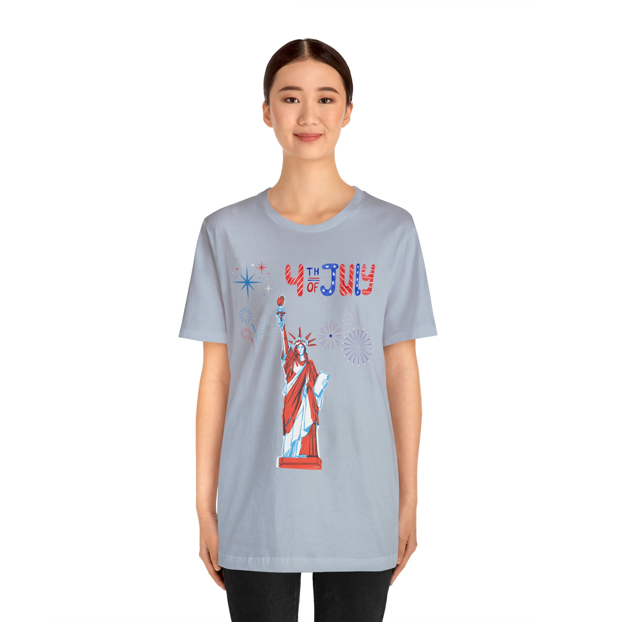 Statue of Liberty Home of the Brave and Free 4th of July Short Sleeve T-Shirt